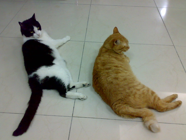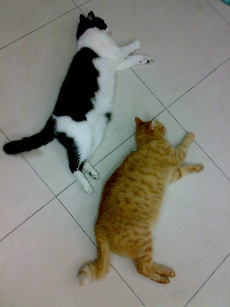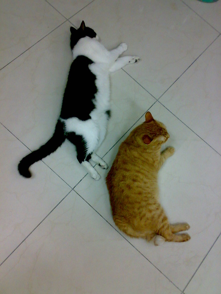 在我的淫威之下~兄弟倆終於乖乖擺出[ 完全必殺之裝死 ] 的姿勢~
